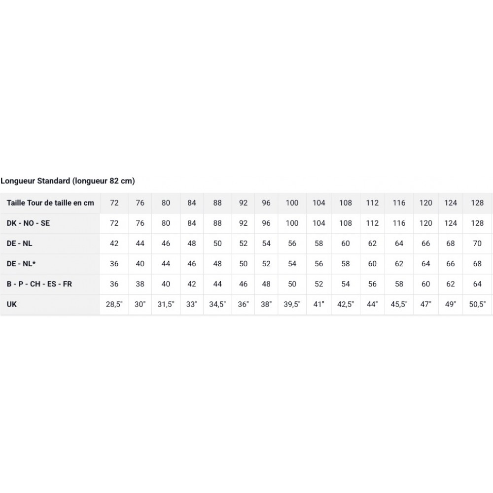 - Zones d'usure : renforts spécifiques à l'arrière et sur le bas des jambes pour prolonger la durée de vie du vêtement.