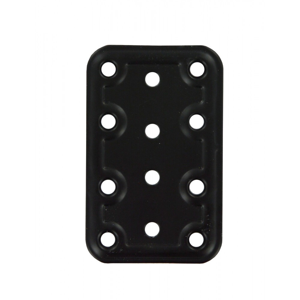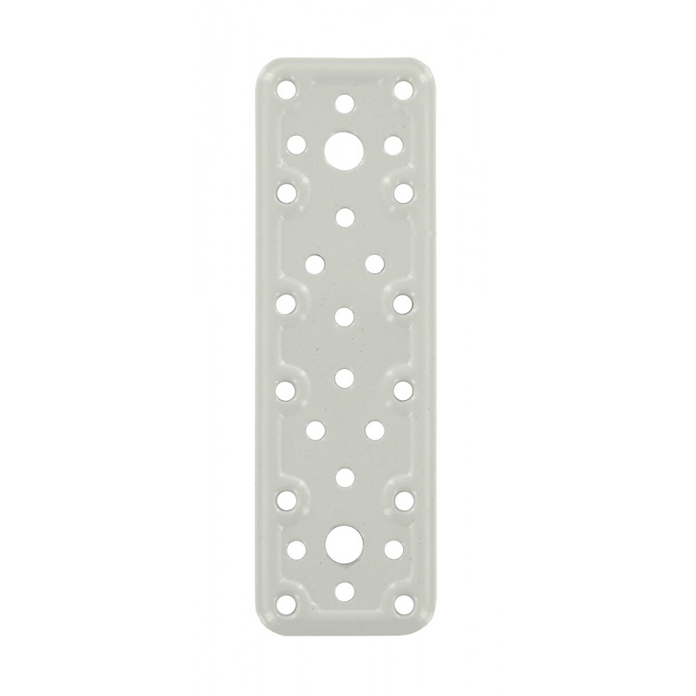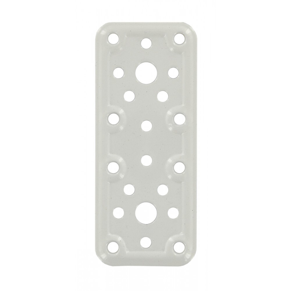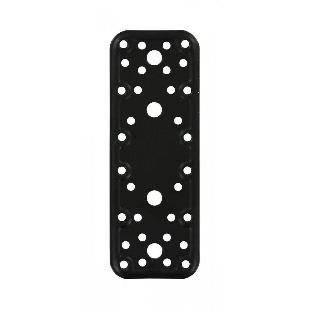 La plaque est dotée de multiples perçages répartis sur toute sa longueur. Cette configuration permet de multiplier les points de fixation pour une meilleure répartition des forces de traction et une adaptation parfaite à la largeur de vos supports.
