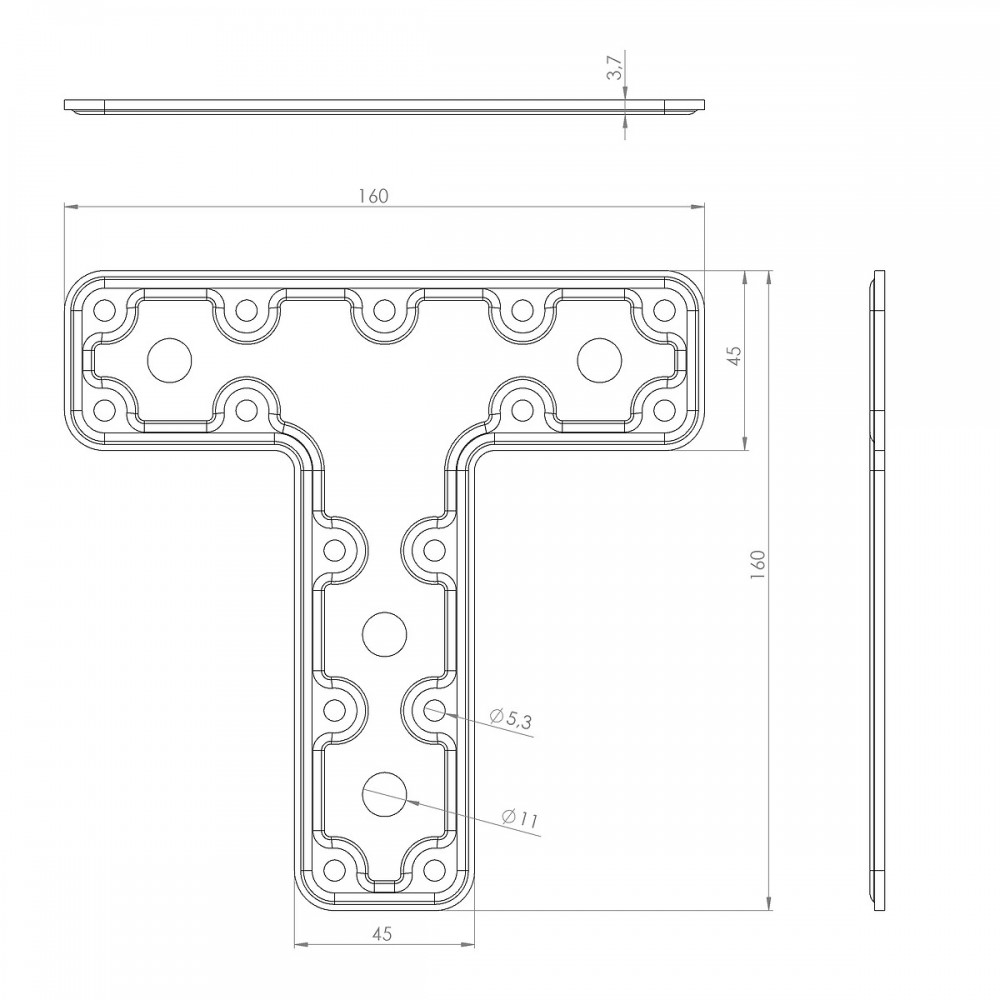 La multiplicité des perçages permet de visser de nombreux points d'ancrage, assurant une liaison indéformable même sous charge.