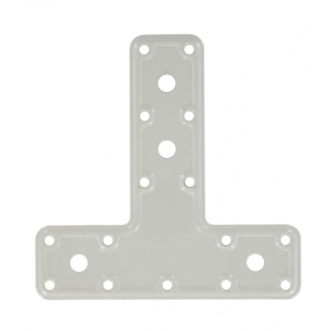 Sa structure en T offre une répartition des forces sur trois directions, ce qui la rend bien plus efficace qu'une simple plaque droite pour stabiliser les cadres. Le revêtement blanc assure une finition propre et discrète, particulièrement adaptée aux aménagements intérieurs, aux étagères de buanderie ou aux structures de placards.