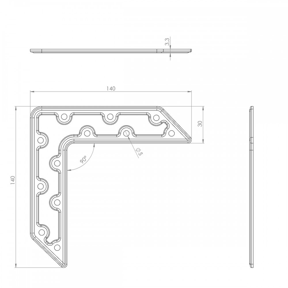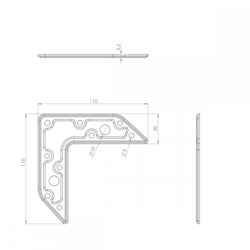 Équerre plate d'assemblage - connecteur multitrous à bouts carrés Interges