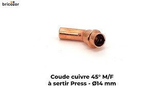 Un coude 45° cuivre à sertir mâle-femelle est un raccord permettant de changer la direction d'un tuyau en cuivre de 45 degrés.