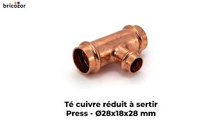 Le Té réduit en cuivre à sertir est un composant utilisé en plomberie pour répartir un flux d'eau (ou de gaz) en 3 directions, avec une sortie de diamètre différent des deux autres.