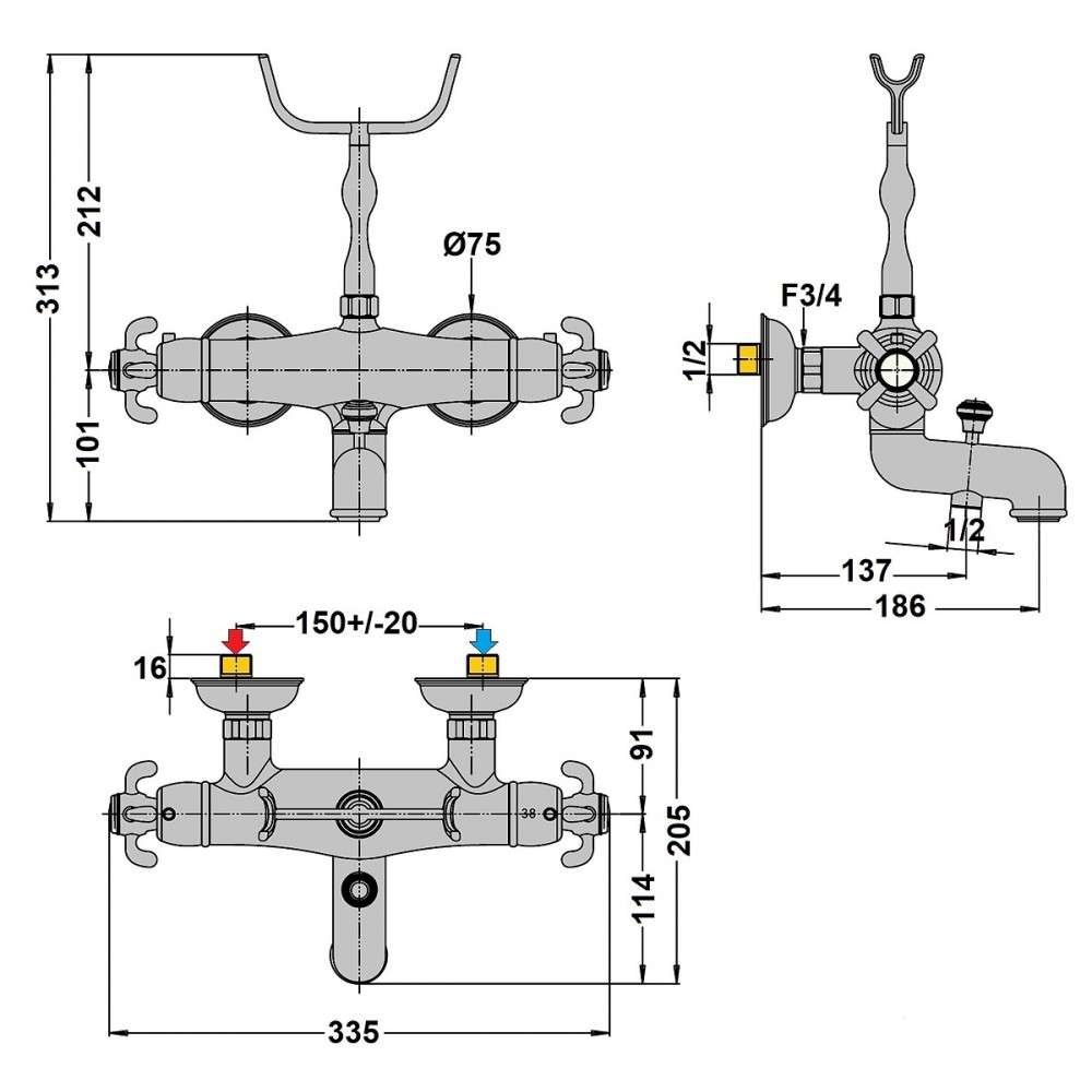 - Bec généreux : Une saillie de 186 mm qui assure une chute d'eau éloignée du bord de la baignoire, idéale pour les modèles de baignoires à rebords larges.