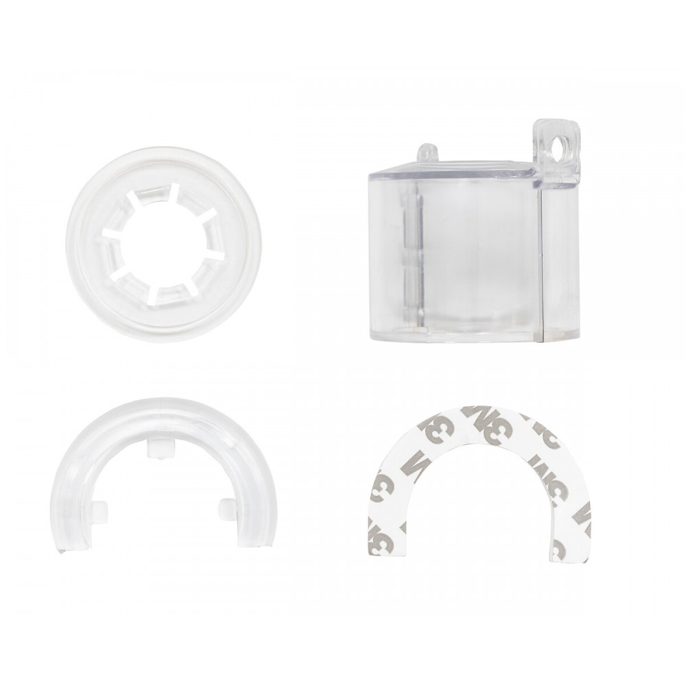 Le socle, inclus dans la livraison, offre un montage flexible : il peut être soit fixé par adhésif, soit pincé autour de l'interrupteur.