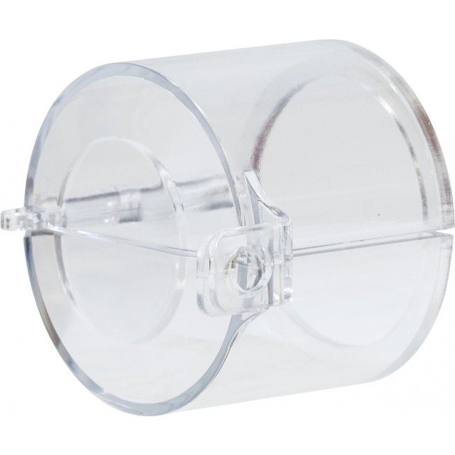 Le dispositif permet le verrouillage de l'interrupteur d'arrêt d'urgence pour 1 cadenas (ou un multiplicateur, si un second cadenas est nécessaire), bloquant l'accès au bouton. Il s'utilise en le fixant sur le socle fourni.