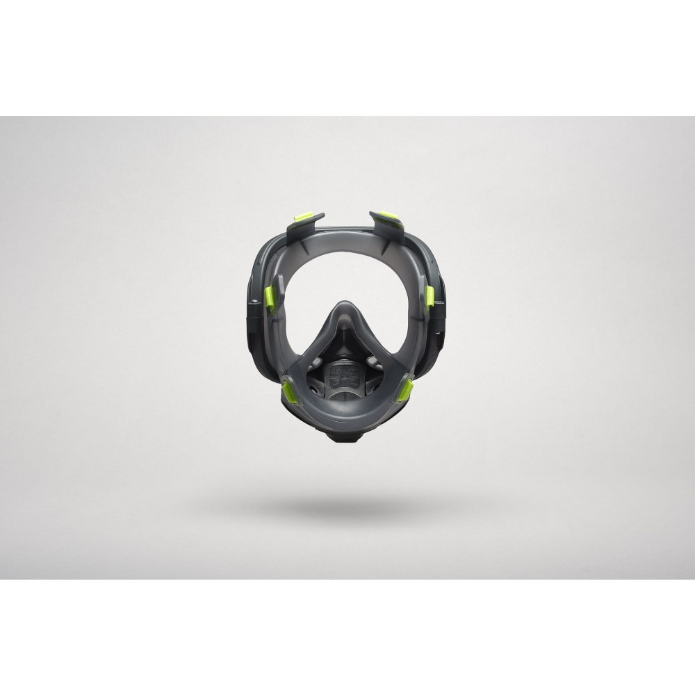 Le masque est équipé d'un joint facial en caoutchouc thermoplastique qui, avec le demi-masque interne, forme un seul corps pour un ajustement étanche et confortable. Le système est conçu pour être antibuée grâce au contrôle précis des flux d'air froid et chaud circulant à l'intérieur, garantissant une vue sans distorsion à travers la visière en polycarbonate. Les dimensions sont compactes pour offrir un excellent champ de vision.