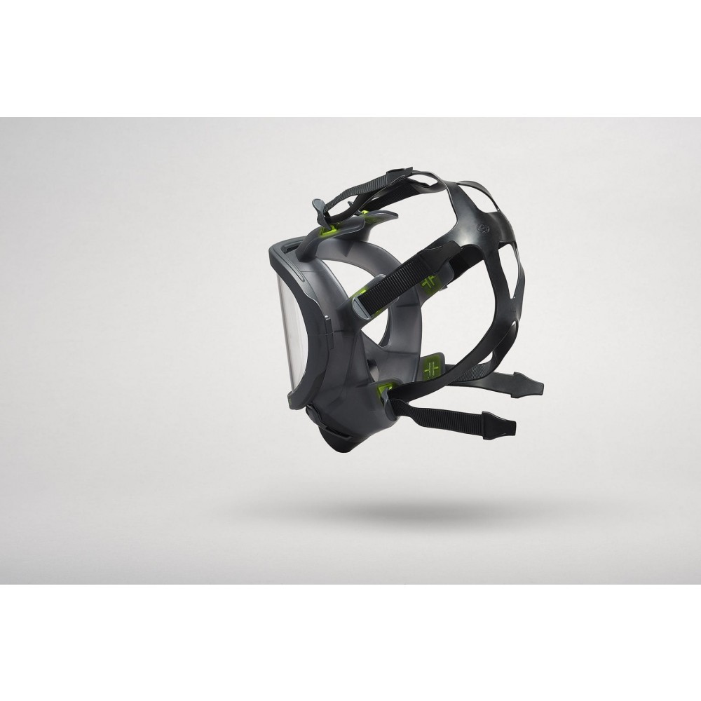 - Un harnais à 6 points garantit un réglage précis et répartit uniformément la pression sur le visage.
