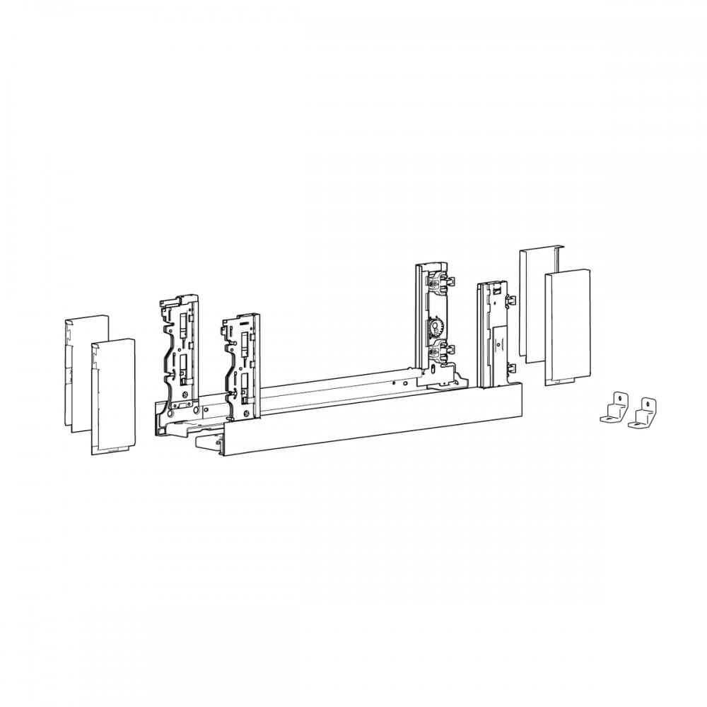 Réhausses verre à commander séparément. À commander séparément : les coulisses Actro YOU ou Quadro YOU et les attaches façades à visser 573976 ou à enfoncer 573969. Fonds et dos non fournies.