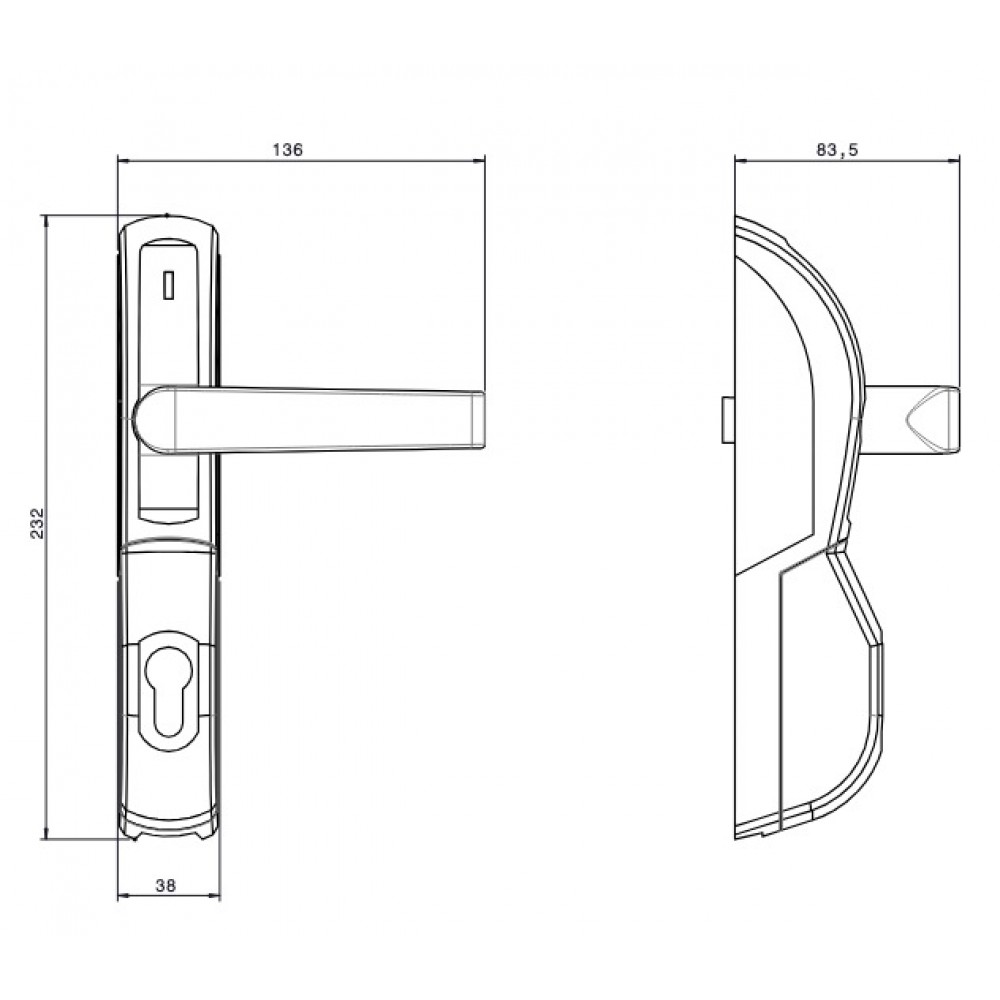 - Dimensions plaque : 232 x 48 x 38 mm (saillie poignée : 83,5 mm)