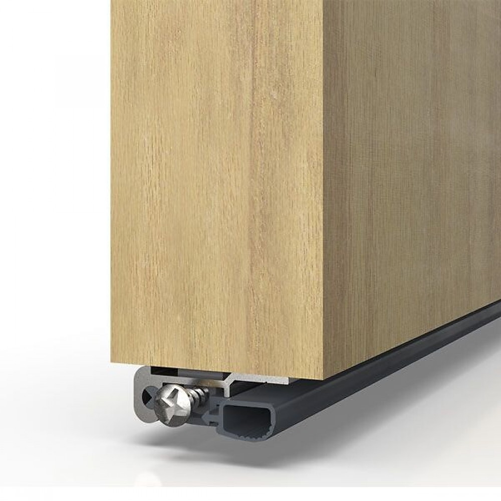 - Fixation invisible : la plinthe se visse directement sous la porte, restant totalement invisible une fois installée.