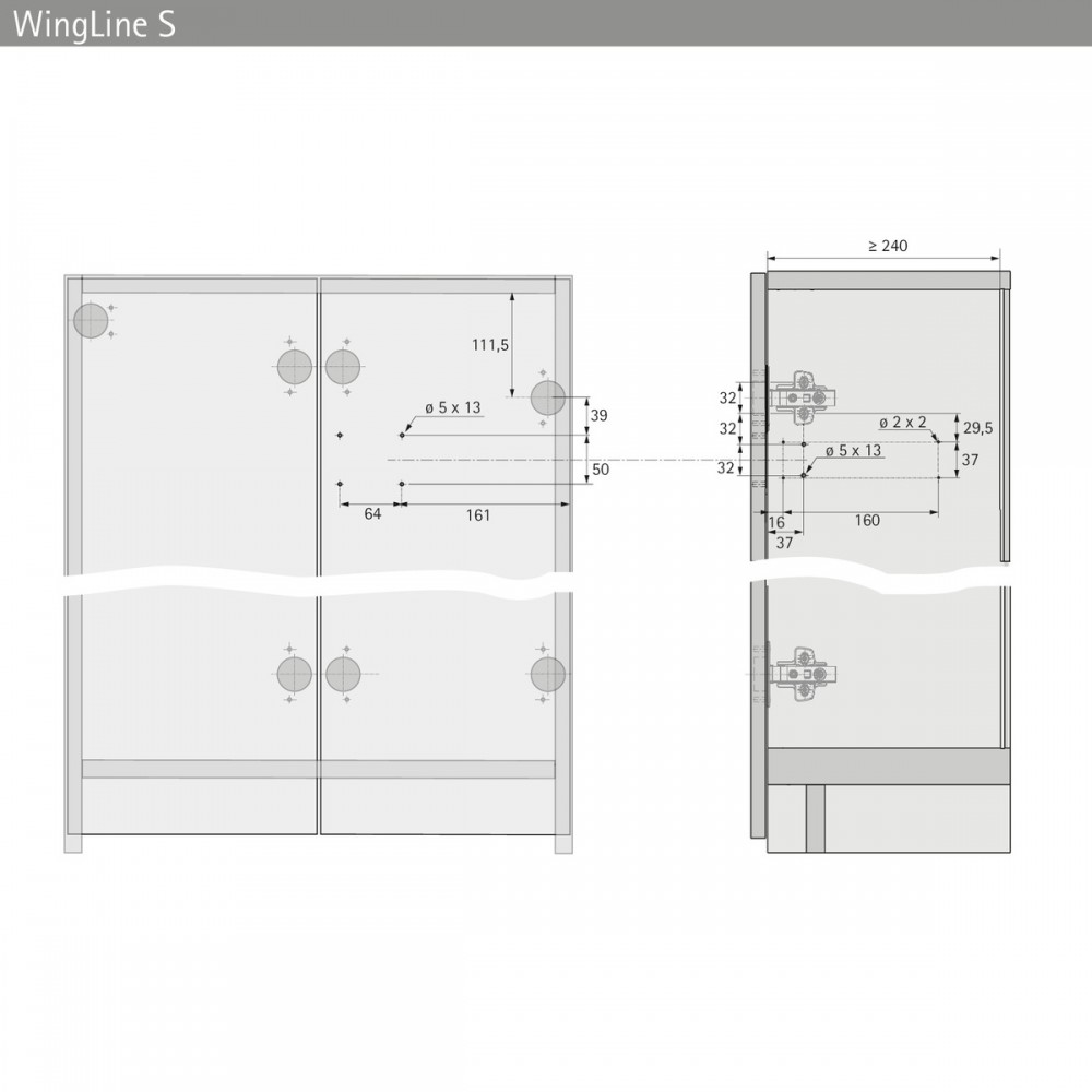 Kit ferrure WingLine S - Pull to Move Silent - finition gris HETTICH