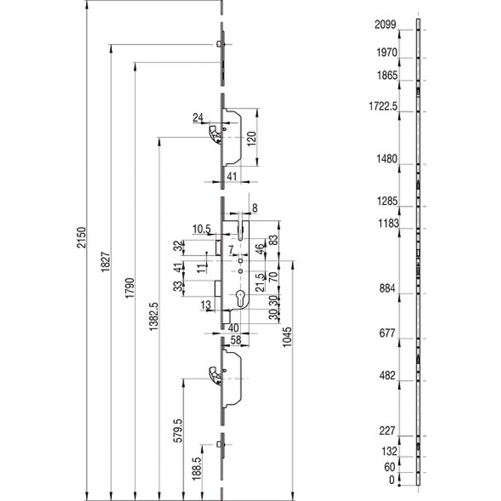 Crémone serrure GU à 2 galets et 2 crochets - Europa FERCO