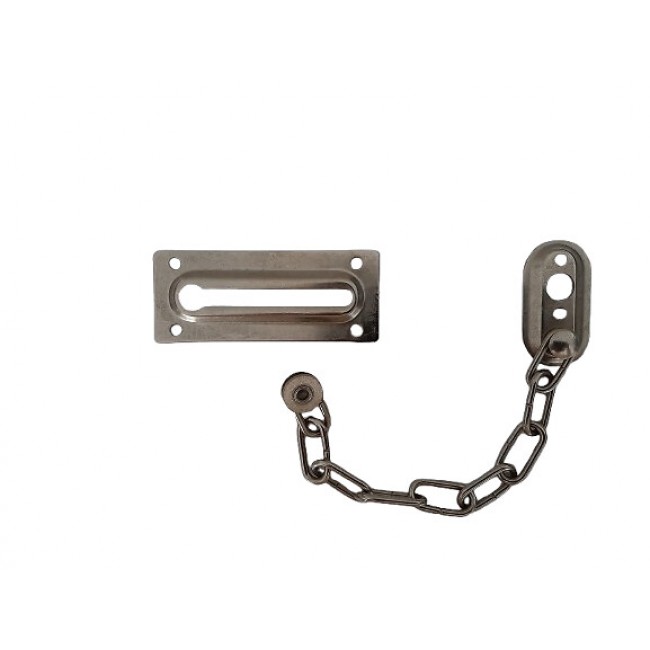 La chaîne, d'une longueur totale de 190 mm, assure un débattement suffisant pour l'identification d'un visiteur ou la ventilation d'une pièce tout en maintenant le verrouillage de l'ouvrant.