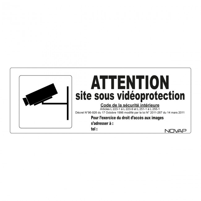 Panneau rigide "Attention site sous vidéoprotection" - 330x120 mm NOVAP