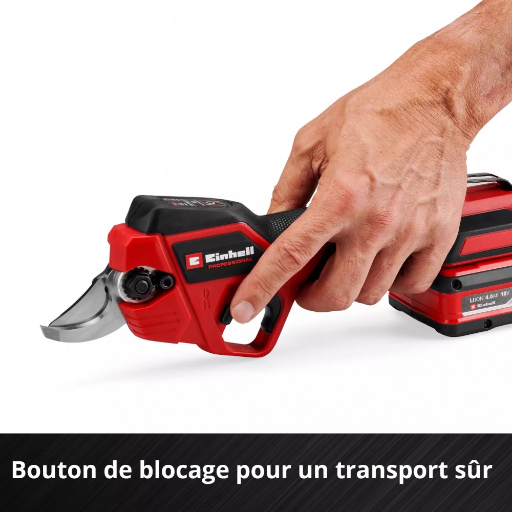 Ce modèle Solo est livré sans batterie ni chargeur, ce qui est parfait si vous êtes déjà équipé du système Power X-Change d'Einhell. Vous pouvez ainsi utiliser la même batterie 18V pour alimenter ce sécateur et tous vos autres outils de la gamme.