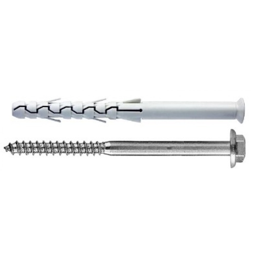 Ces chevilles longues en nylon de diamètre 16 mm sont conçues pour les fixations lourdes nécessitant une puissance de serrage maximale. Équipées d'une vis en acier galvanisé à tête hexagonale (clé de 19 mm), elles offrent une solution robuste pour ancrer des éléments volumineux dans la plupart des matériaux de construction.