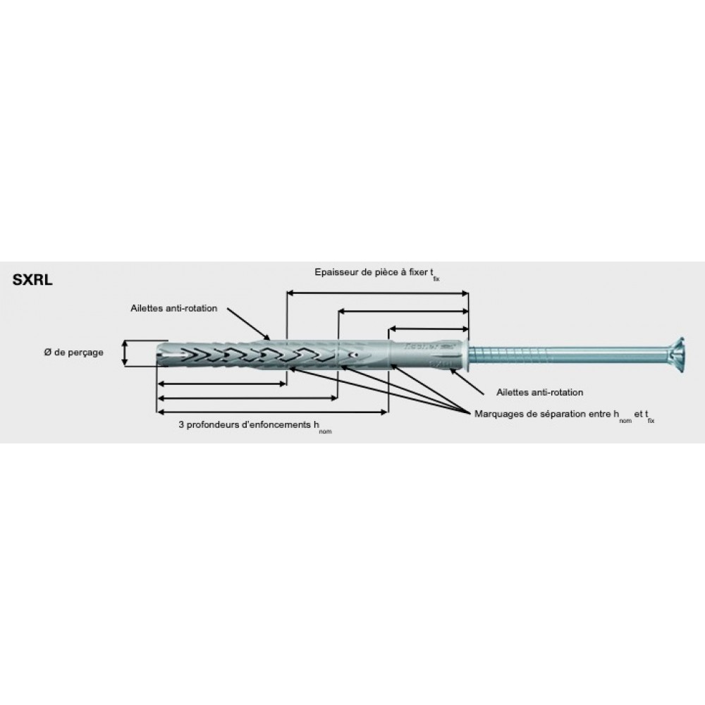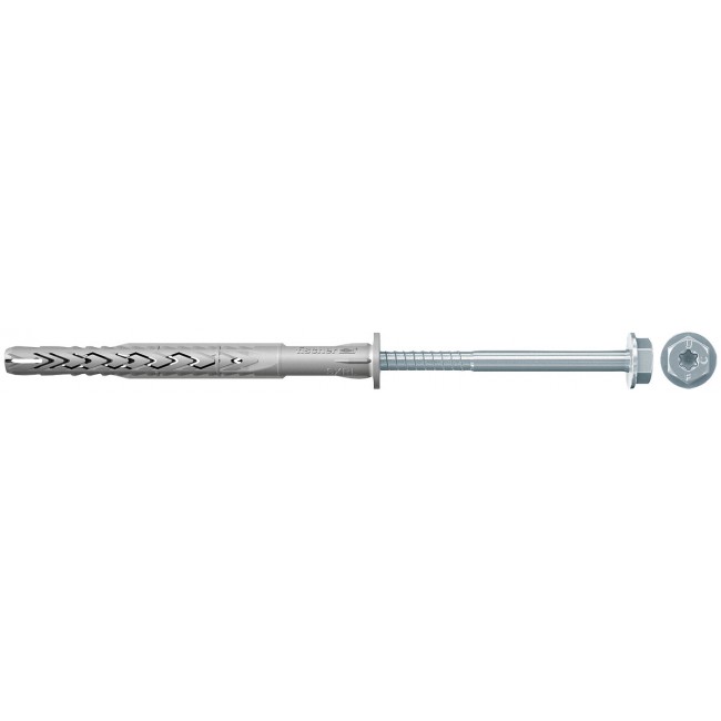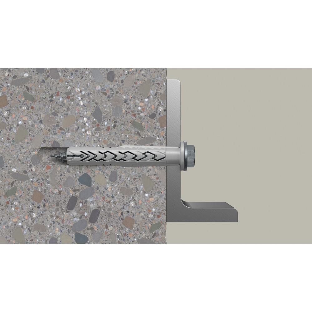 La Fischer SXRL-FUS est la cheville rallongée la plus polyvalente de sa catégorie. Équipée d'une vis hexagonale à rondelle intégrée, elle est spécifiquement conçue pour la fixation de systèmes non structurels (façades, ossatures, plafonds) dans une multitude de matériaux, du béton plein à la maçonnerie la plus fragile.
