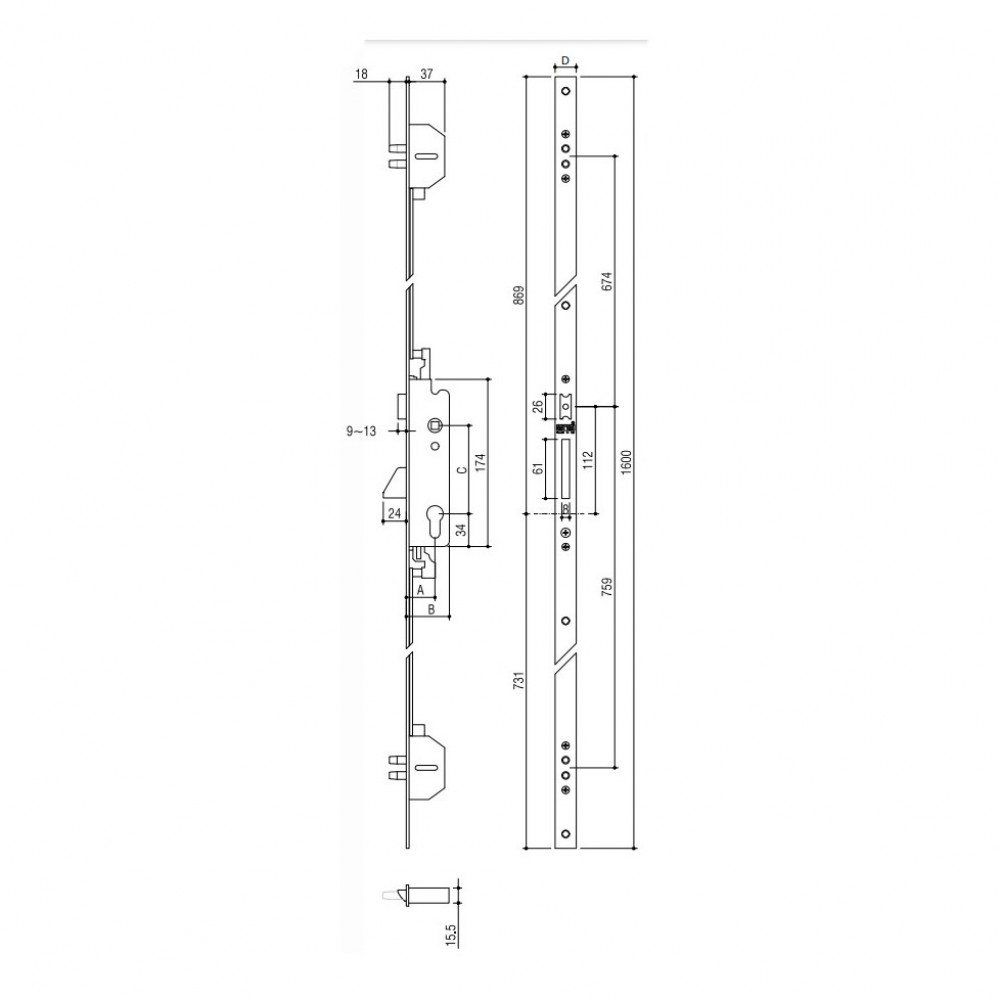 - Slim Box (15,5 mm) : avec une épaisseur de boîtier de seulement 15,5 mm, cette serrure s'intègre parfaitement dans les profilés aluminium les plus fins sans affaiblir la structure de la porte.