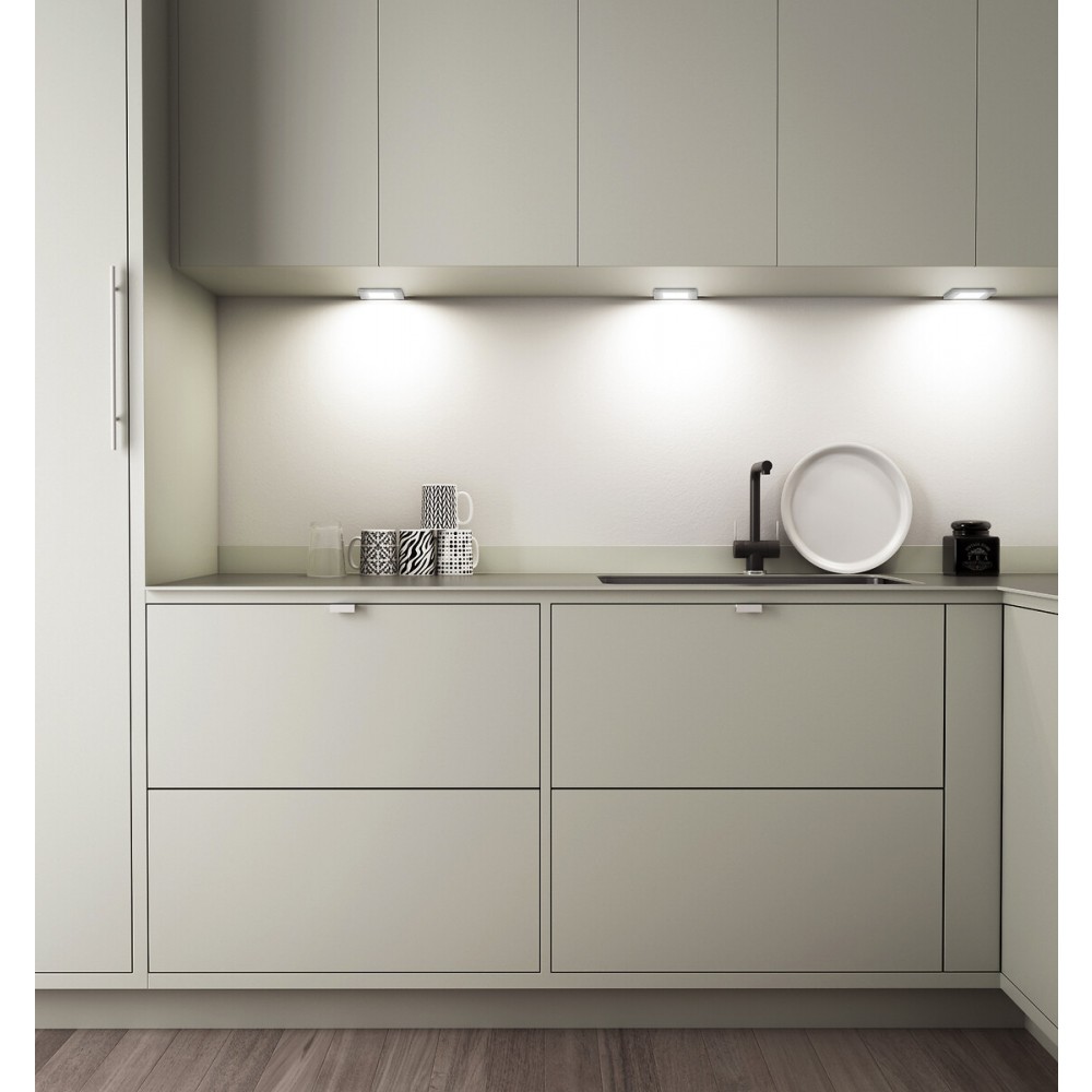 Le kit de 3 spots LED Planar S de L&S offre une solution d’éclairage sous meuble élégante, discrète et performante, idéale pour les cuisines, rangements, plans de travail ou tout espace nécessitant un éclairage ponctuel net et homogène. Chaque spot adopte un design carré moderne et une épaisseur réduite de seulement 5 mm, permettant une intégration visuelle parfaite sans alourdir le mobilier.