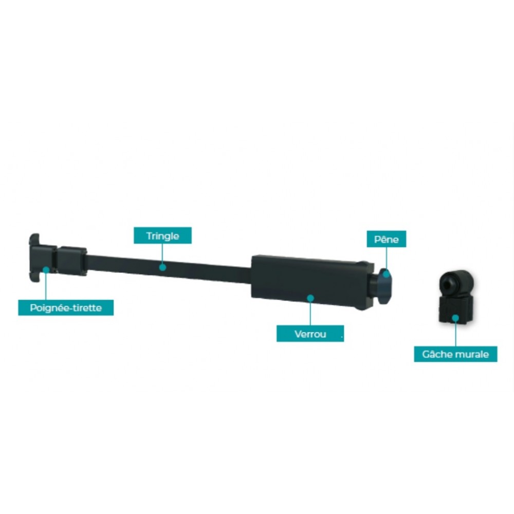 Kit complet arrêt de volet Ellipse® noir avec cale, poignée et tringle 460 mm TORBEL