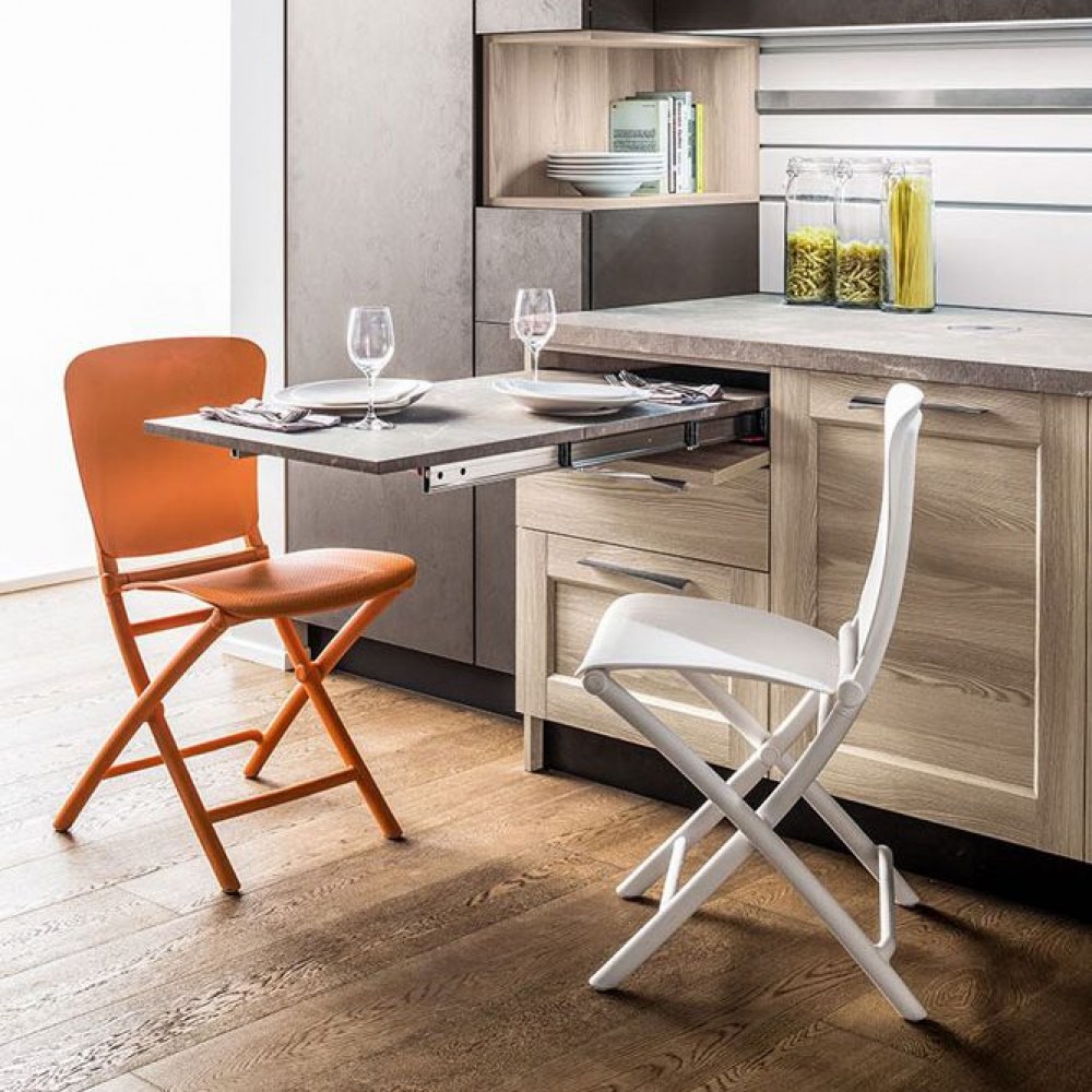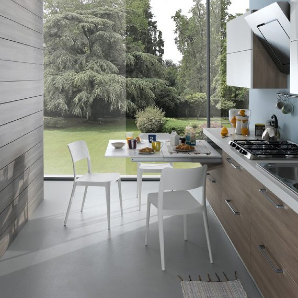 Ce système est particulièrement recommandé pour créer un coin petit-déjeuner ou une extension de plan de travail pour la préparation des repas. Lors de la fabrication de vos plateaux en bois, veillez à respecter l'épaisseur minimale de 16 mm pour garantir la stabilité et la bonne fixation des charnières centrales.