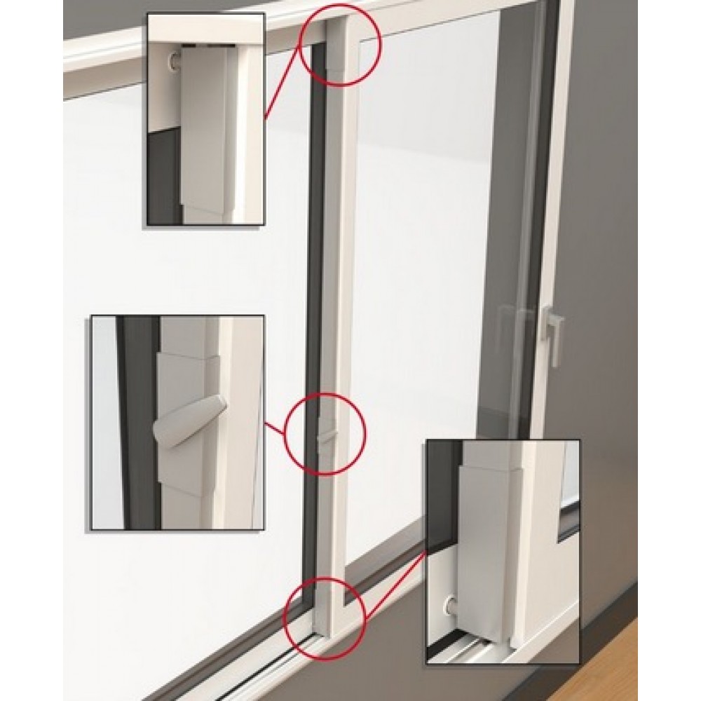 - Protection anti-dégondage : en solidarisant le vantail intérieur au dormant en haut et en bas, le système empêche mécaniquement de soulever la baie pour la sortir de ses rails.