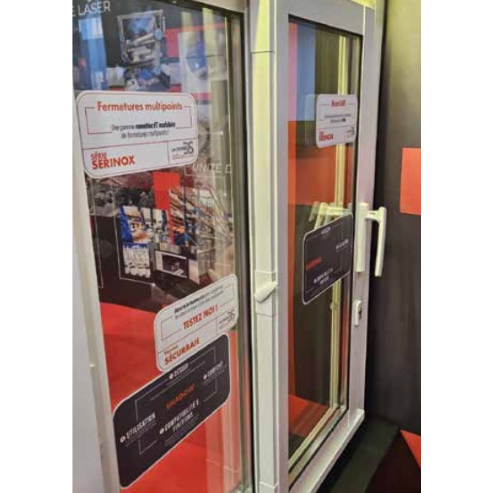 - Installation non-intrusive : se pose directement sur le profilé à champ plat (largeur minimale de 35 mm) du vantail intérieur.