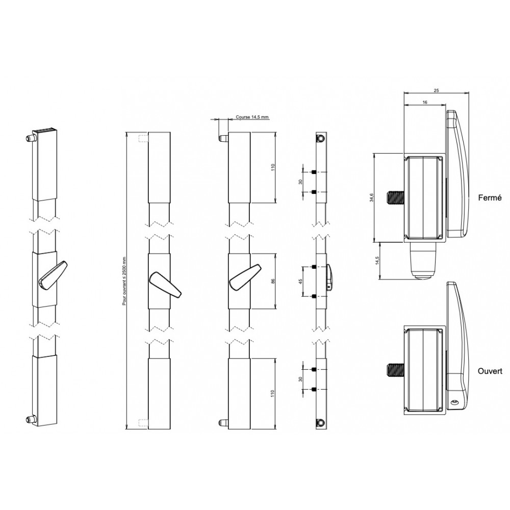 - Grande hauteur : compatible avec des vantaux allant jusqu'à 2500 mm de hauteur.
