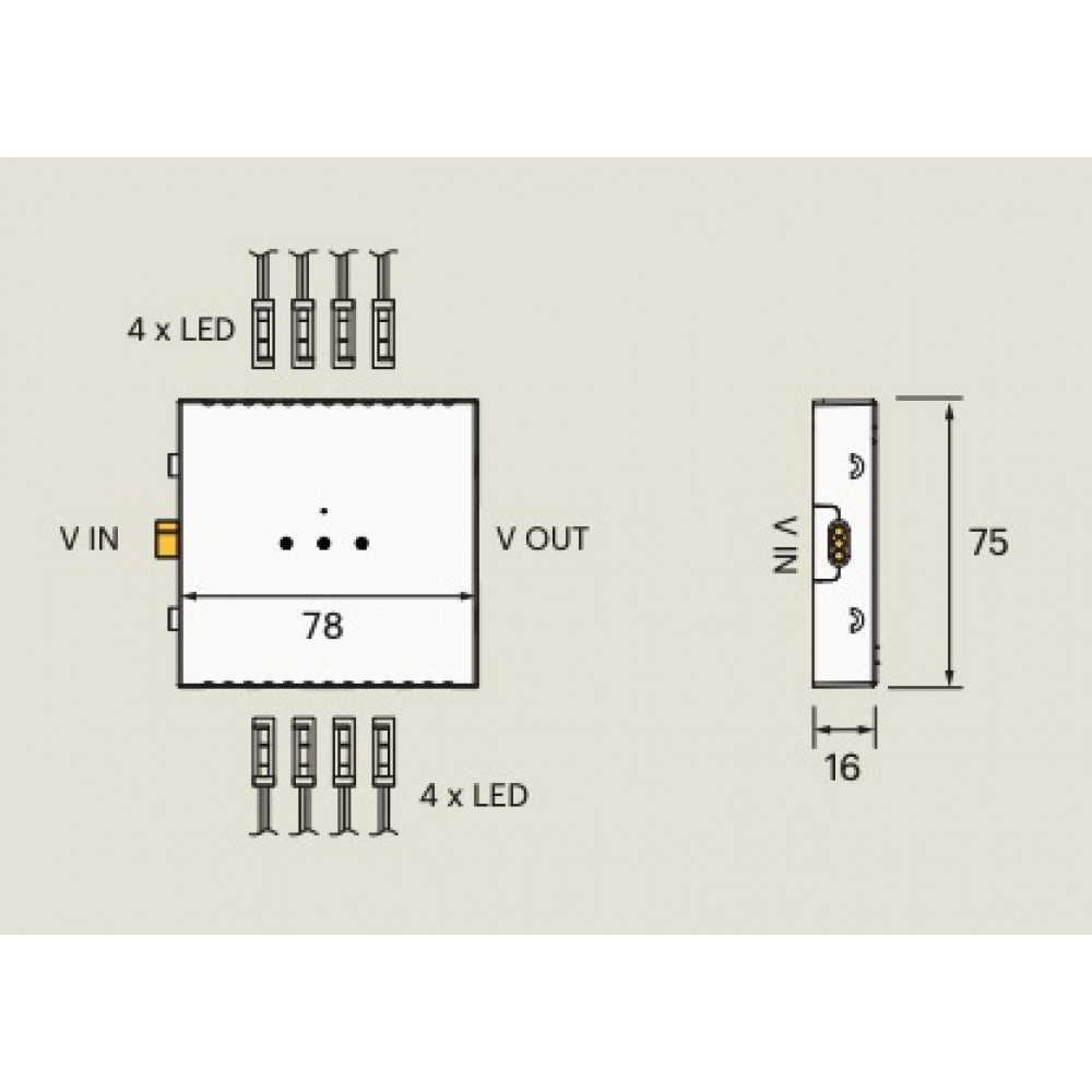Disponible en versions pour LED Mono ou EDC (Dual Color), il conserve une tension de fonctionnement constante de 24V pour tous les modules connectés en série, permettant une installation en ligne continue sans perte de performance.