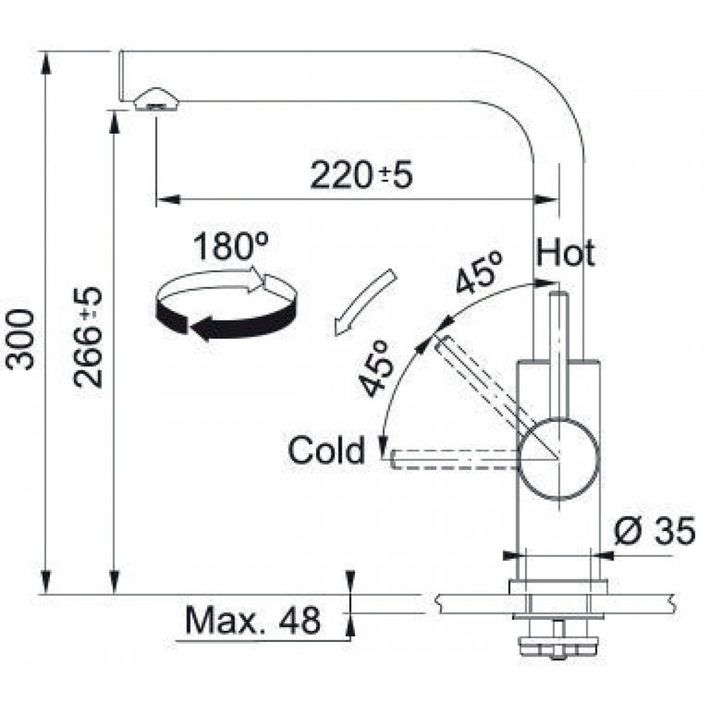 Ce modèle avec bec en « L » et pivotant à 180° permet une grande liberté de mouvement pour les éviers simples ou doubles.