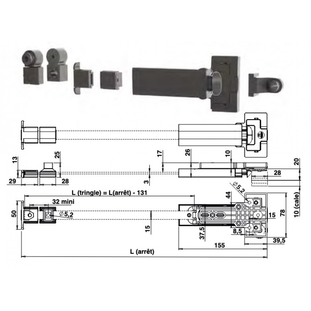 Kit arrêt de volet Ellipse® universel avec cale en composite noir sans tringle TORBEL