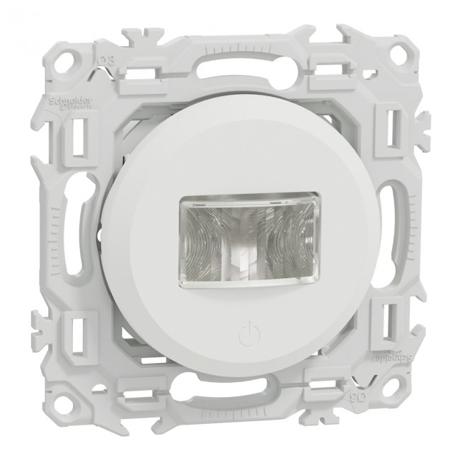 Le détecteur est livré avec son support de fixation intégré et son cache de protection peinture. Il est compatible avec toutes les plaques de finition : Odace, Odace Métal, Odace Architecte et Odace Origine.