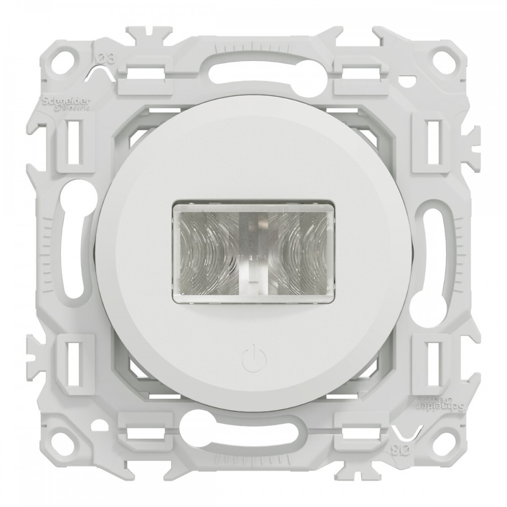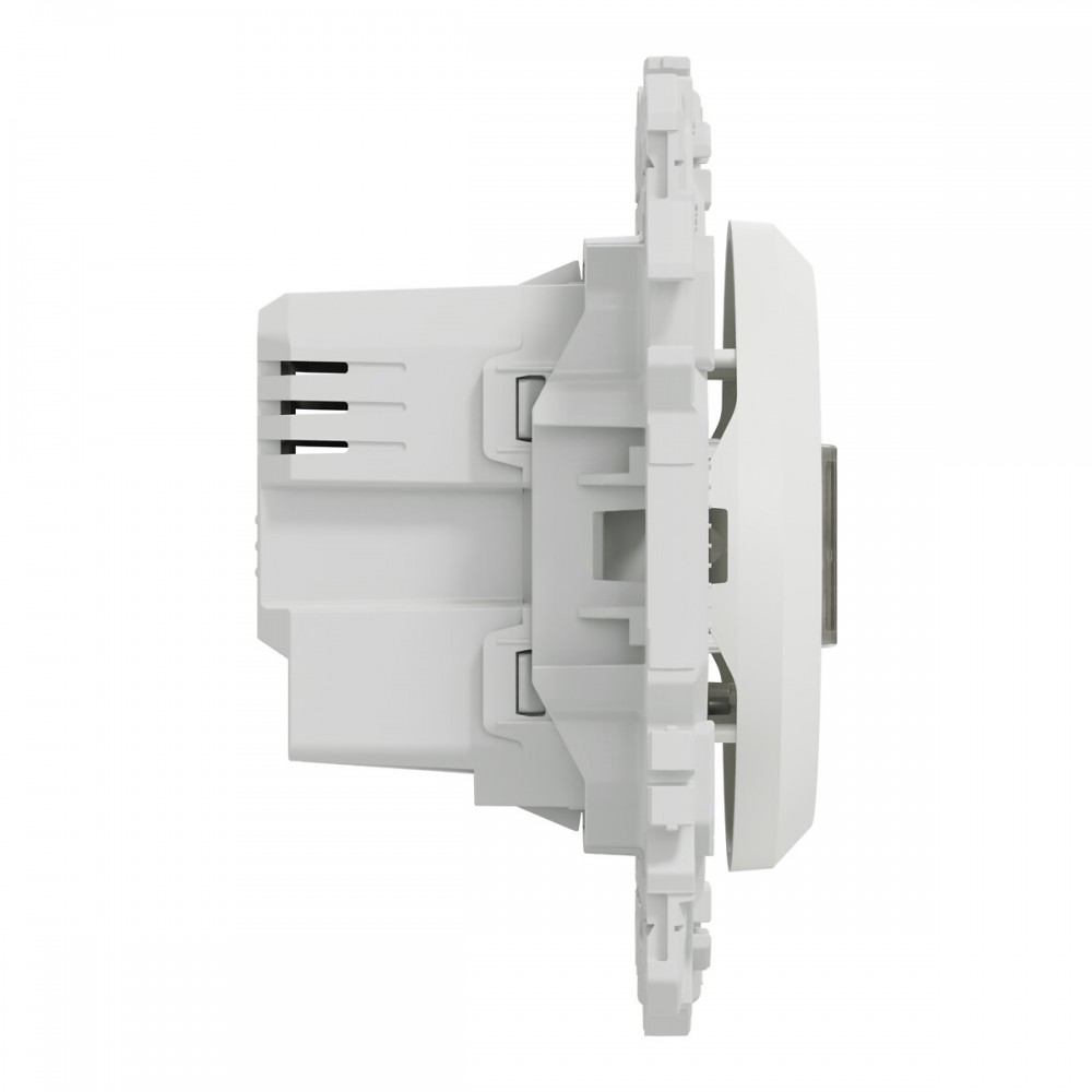 Son support de fixation robuste permet une installation fiable sur toutes les boîtes d'encastrement. Les griffes clipsables (en option) facilitent la pose en rénovation, tandis que le cache peinture fourni garantit une installation soignée.