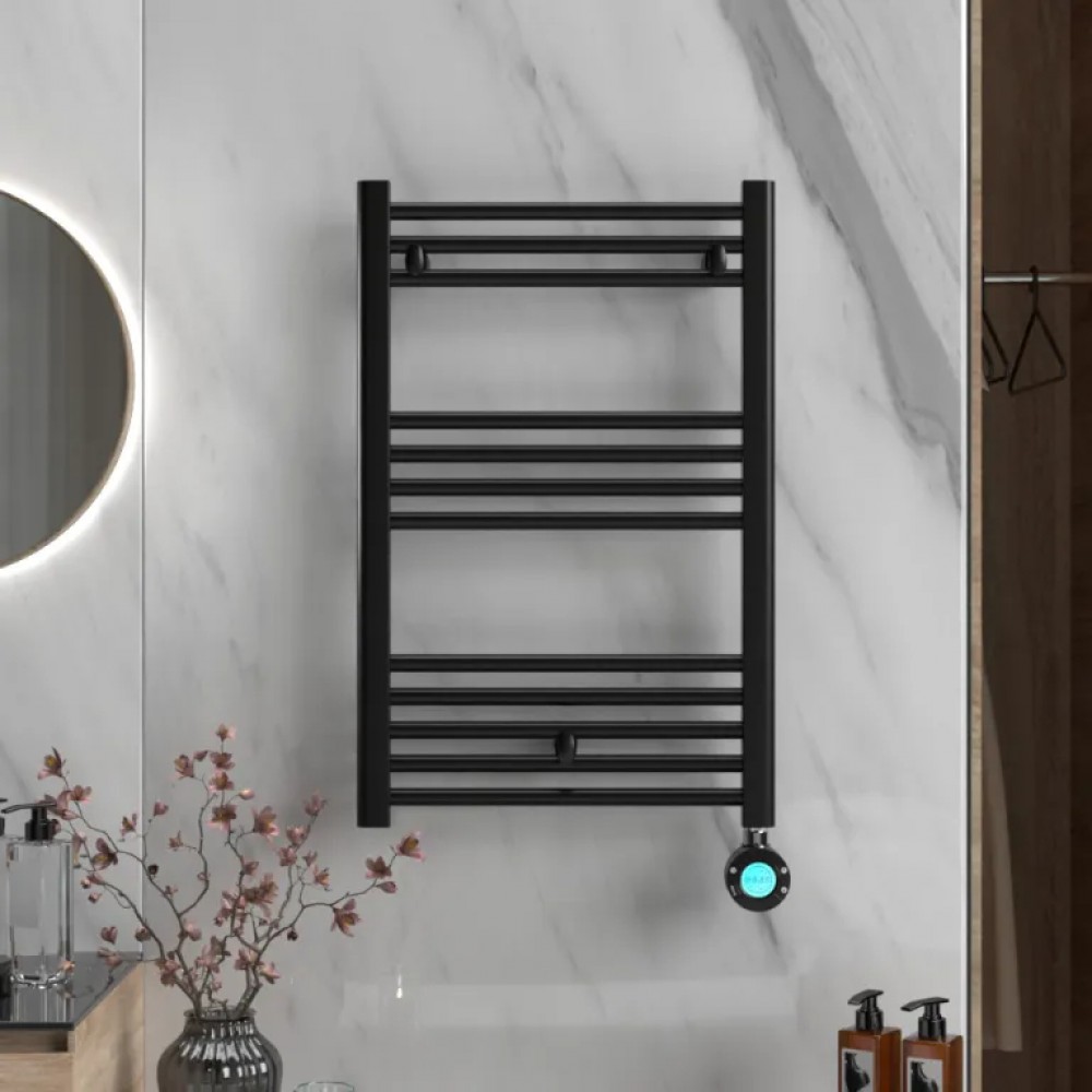 Conçu en acier de haute qualité (ST12), le ELBA Plus associe résistance, durabilité et excellente conductivité thermique. Sa finition noire apporte un style résolument contemporain, chic et sophistiqué à votre salle de bains. Elle crée un contraste très esthétique avec des éléments clairs comme le carrelage blanc, la porcelaine d'une vasque ou d'une baignoire.