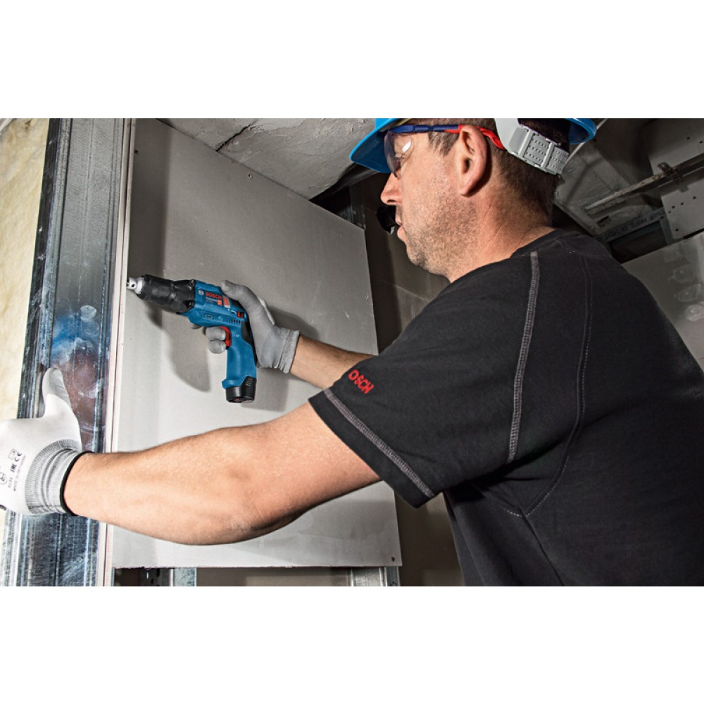 La visseuse plaquiste sans-fil GTB 12V-11 de Bosch allie compacité, légèreté et performances professionnelles pour répondre aux besoins des plaquistes et artisans exigeants. Fonctionnant sur batterie 12V, elle ne pèse que 900 g avec une batterie de 2,5 Ah, offrant ainsi une prise en main optimale et un confort d’utilisation maximal même dans les espaces les plus exigus. Son moteur très compact mais puissant permet de visser jusqu’à 1 200 vis par charge de batterie, garantissant productivité et efficacité sur les chantiers. La technologie Bosch moteur sans charbon avec Electronic Motor Protection et frein moteur assure une longévité exceptionnelle de l’outil, tout en maintenant des performances constantes même en usage intensif.