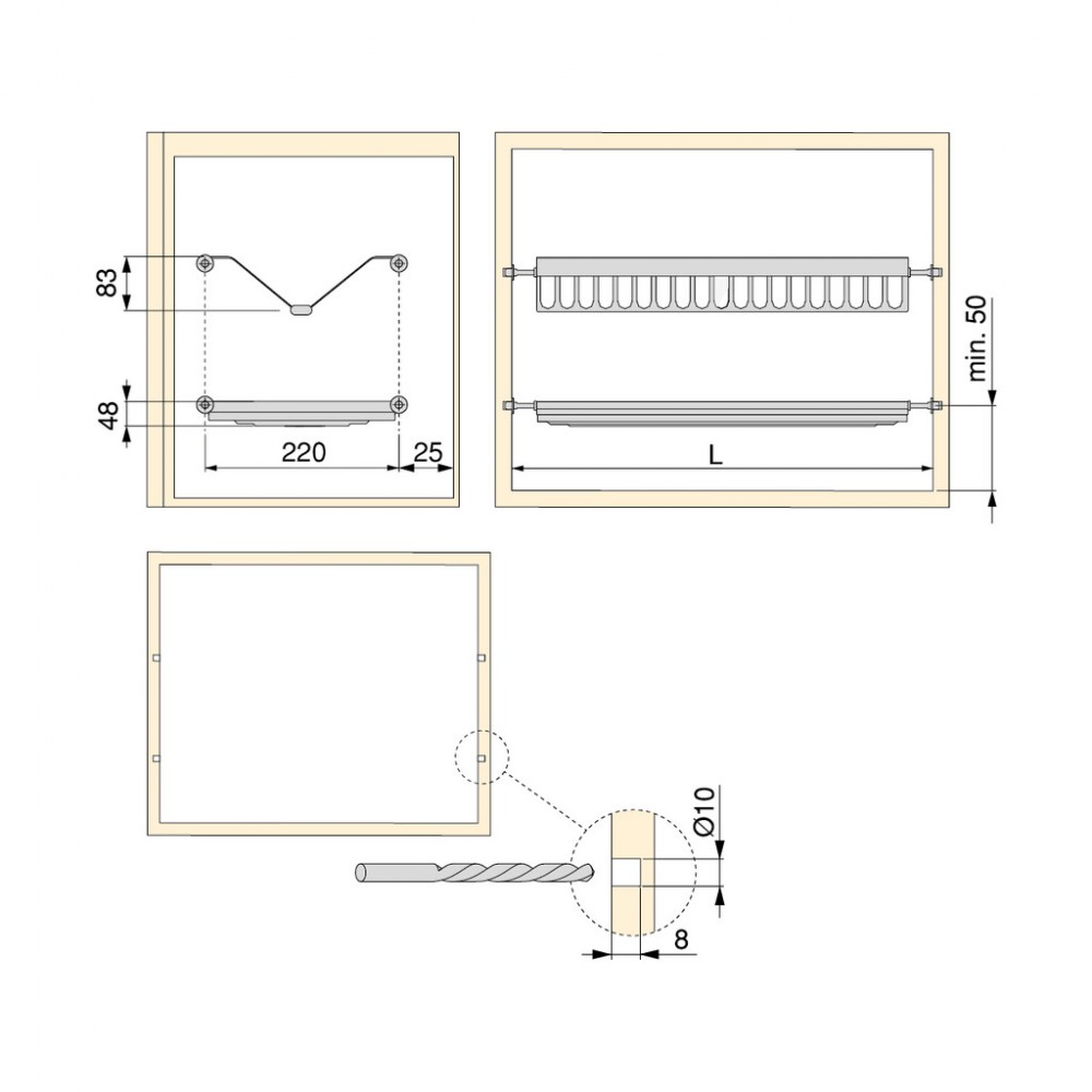 L'égouttoir Drynox est un système d'organisation hygiénique conçu pour optimiser l'espace à l'intérieur des meubles de cuisine hauts, offrant une solution complète pour le séchage de la vaisselle.