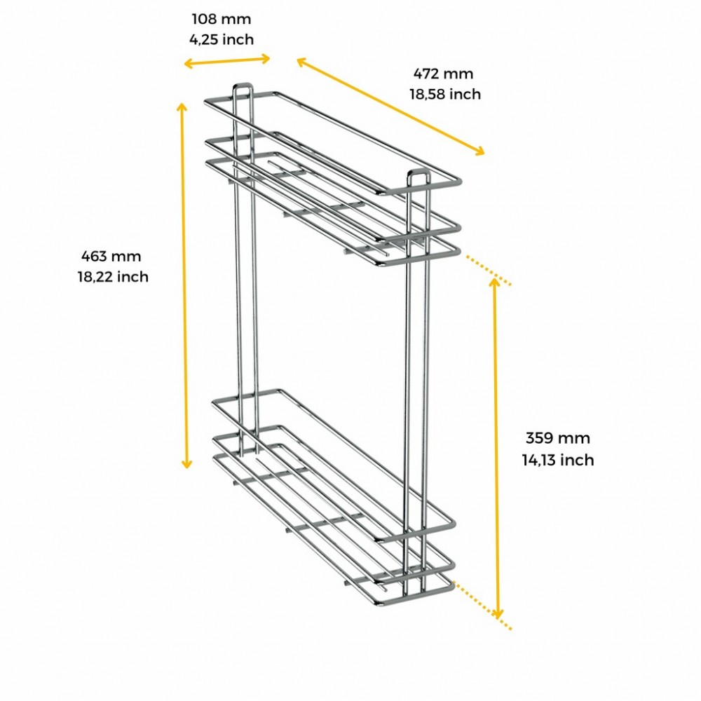 Il s'agit d'un panier coulissant à deux niveaux avec une structure élégante en acier chromé. Il est équipé de deux coulisses à roulement à billes à sortie partielle pour une ouverture et une fermeture normales (sans amortissement).