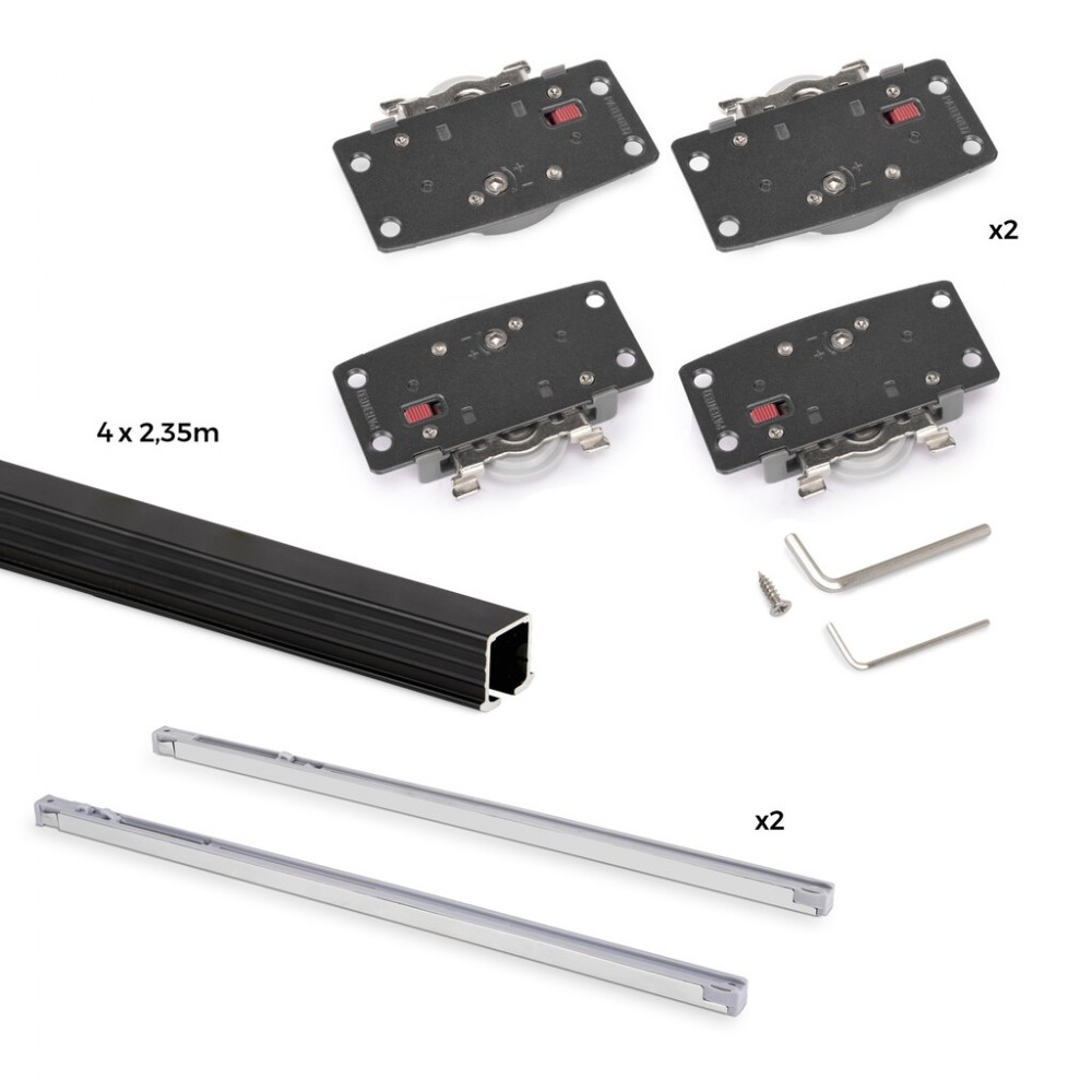 4 profils de 2,35 m, 2 jeux d'accessoires souples, 2 jeux de chariots pour les deux portes