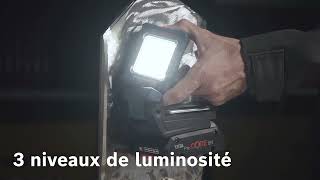 Sa luminosité maximale de 800 lumens est assurée par 20 LED et est ajustable sur 3 niveaux de luminosité via une simple commande par bouton unique, permettant d'optimiser l'autonomie en fonction des besoins.