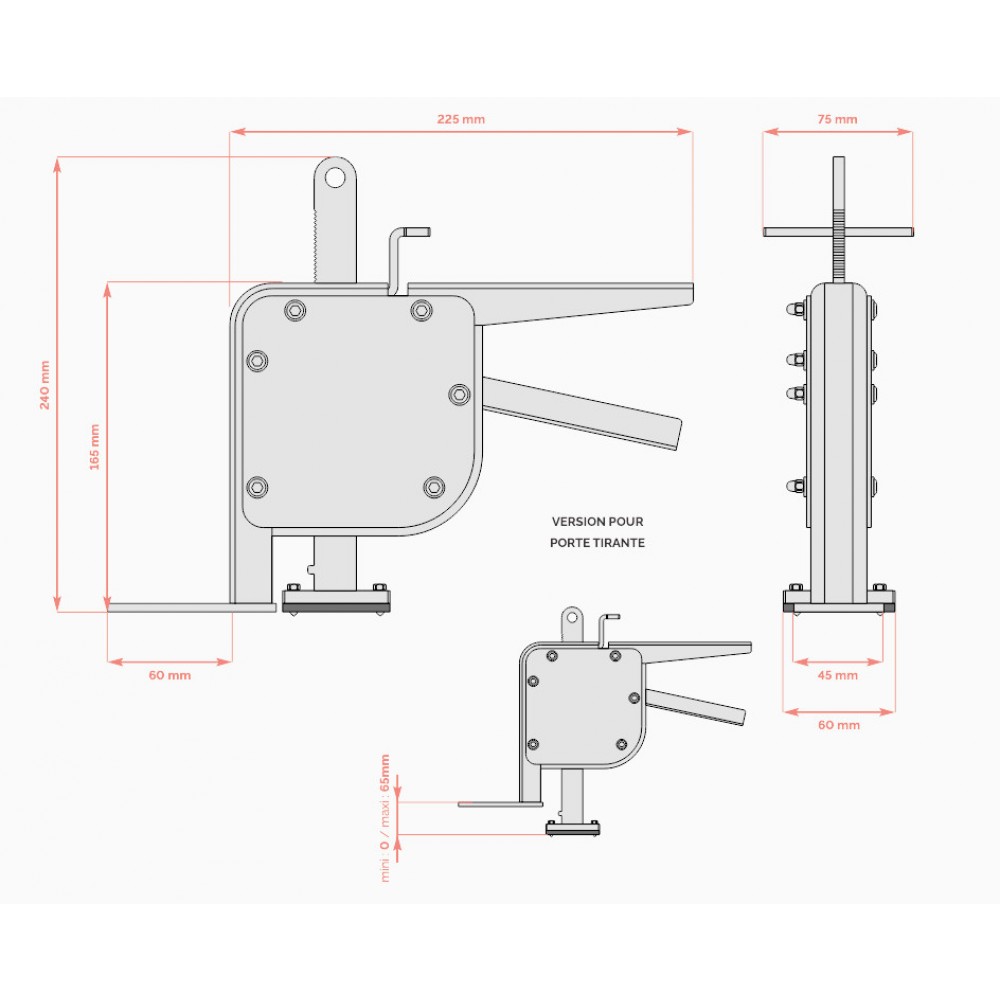 - Effet de levier : en glissant le dispositif sous la porte et en actionnant la poignée, une pression intense est créée entre le sol, le vantail et la maçonnerie.