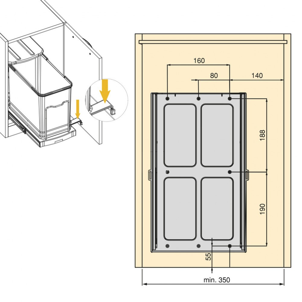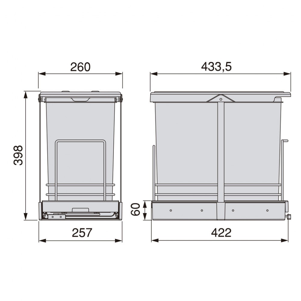 Son système coulissant à billes permet une extraction totale, assurant un accès simple et fluide au conteneur, que ce soit en ouverture manuelle ou automatique lorsqu’elle est fixée à la porte du meuble.