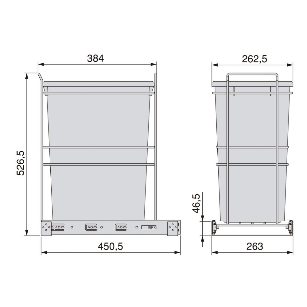 La poubelle de recyclage 35 L est conçue pour un tri sélectif simple et pratique dans les meubles de cuisine. Son conteneur amovible permet de jeter facilement les déchets ménagers, tout en garantissant un accès fluide grâce à ses coulisses à billes à extraction totale avec fermeture en douceur.