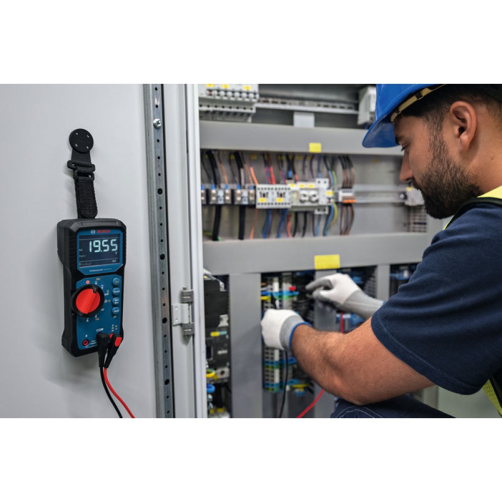 - Sa sangle auto-agrippante réglable s’adapte facilement à différents outils de test Bosch, offrant une solution pratique pour le travail mains libres, même dans des positions difficiles d’accès.