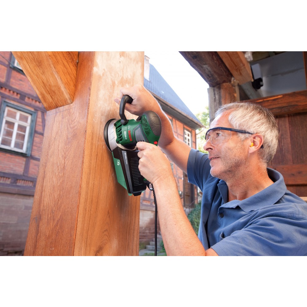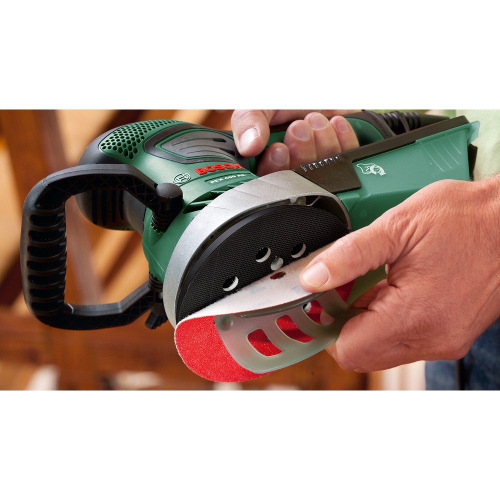 La Ponceuse Bosch PEX 400 AE est alimentée par un puissant moteur de 370 W, garantissant une efficacité redoutable dans le retrait de matière. Elle utilise un plateau de ponçage standard de 125 mm de diamètre, facilement disponible.