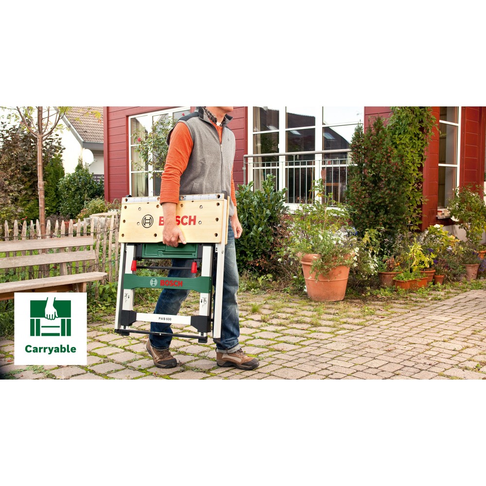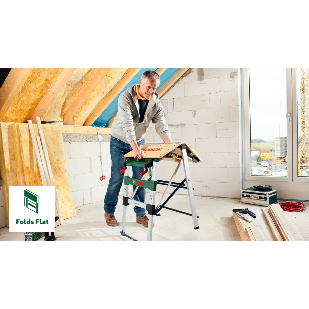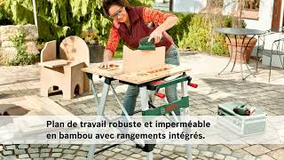 Le modèle Bosch PWB 600 est conçu pour supporter des charges importantes et offrir une surface de travail généreuse :