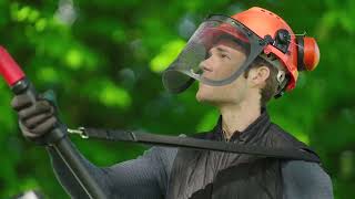 La UniversalChainPole 18 excelle par sa capacité à atteindre les hauteurs. La perche télescopique permet un réglage en hauteur variable de 210 cm à 260 cm, éliminant le besoin d'échelles dangereuses. Pour une adaptation parfaite à l'angle des branches, la tête de coupe est pivotante à 120°, garantissant une ergonomie de travail optimale et une précision de coupe quelle que soit la position. Le diamètre du cercle de coupe effectif est de 14,5 cm.
