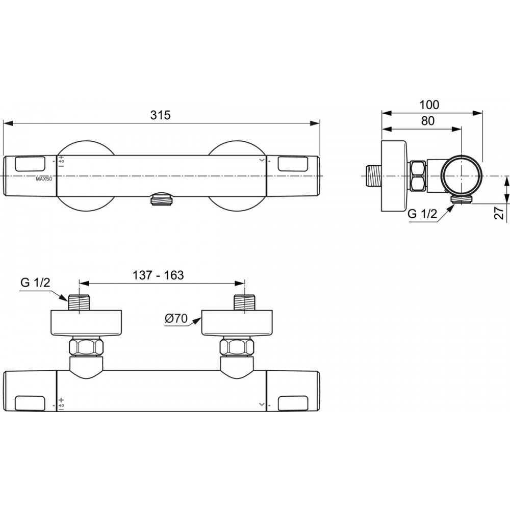 Compatible avec tous les types de production d’eau chaude, ce mitigeur est simple à installer grâce à son entraxe standard de 150 mm ± 13 mm.