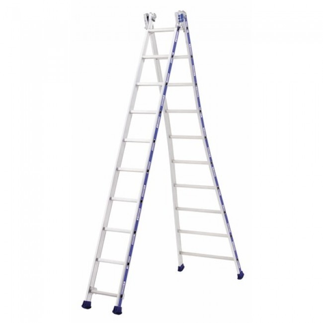 Échelle transformable aluminium 5,5m- 2 plans - 2 x 9 marches - Platinium TUBESCA