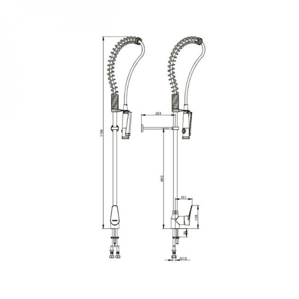 Mitigeur cuisine professionnelle avec douchette - sur plage - sans bec PRESTO